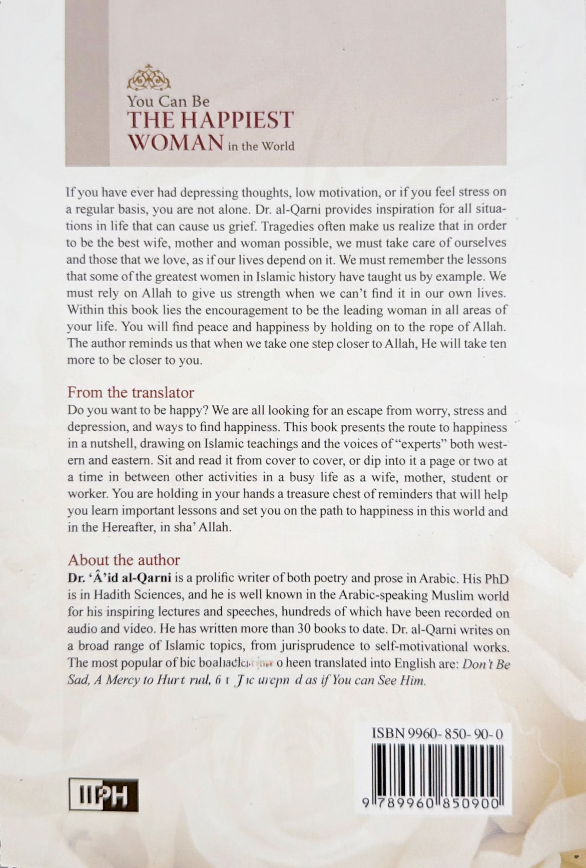 If you have ever had depressing thoughts, low motivation, or if you feel stress on a regular basis, you are not alone. Dr. al-Qarni provides inspiration for all situations in life that can cause us grief. Tragedies often make us realize that in order to be the best wife, mother and woman possible, we must take care of ourselves and those that we love, as if our lives depend on it. We must remember the lessons that some of the greatest women in Islamic history have taught us by example. We must rely on Allah to give us strength when we can’t find it in our own lives. Within this book lies the encouragement to be the leading woman in all areas of your life. You will find peace and happiness by holding on to the rope of Allah. The author reminds us that when we take one step closer to Allah, He will take ten more to be closer to you.