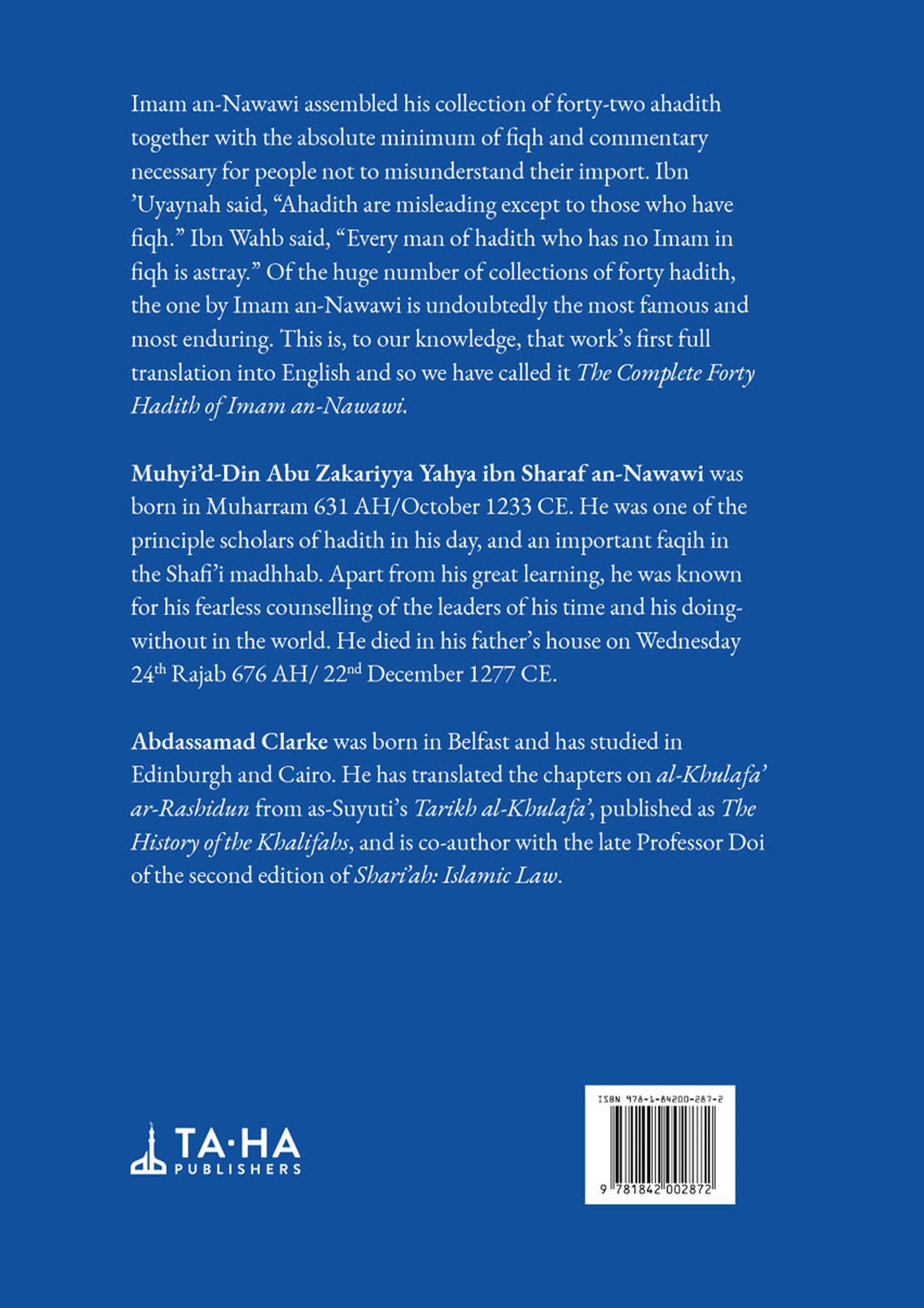 Of all the collection of hadith, this collection of Forty Hadith by Imam an-Nawawi is surely the most famous and enduring. It covers all the major aspects of the deen. Each sahih hadith is presented in Arabic and English and is followed up with a commentary by Imam an-Nawawi.